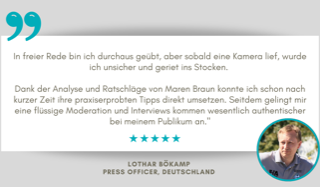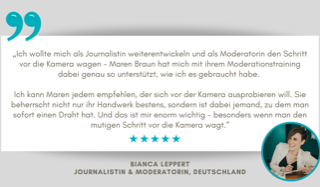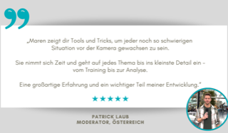 Darum möchte ich dir in meinem Training zeigen, was du alles tun kannst, um echtes Selbstvertrauen zu entwickeln und dich vor der Kamera und vor Publikum viel wohler und sicherer zu fühlen.”