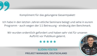 Es gibt keine bessere Vorbereitung, als den wichtigen Auftritt vor Publikum oder Kamera vorher einfach mal zu proben - genau dafür sind meine SHOWTIME Seminare da